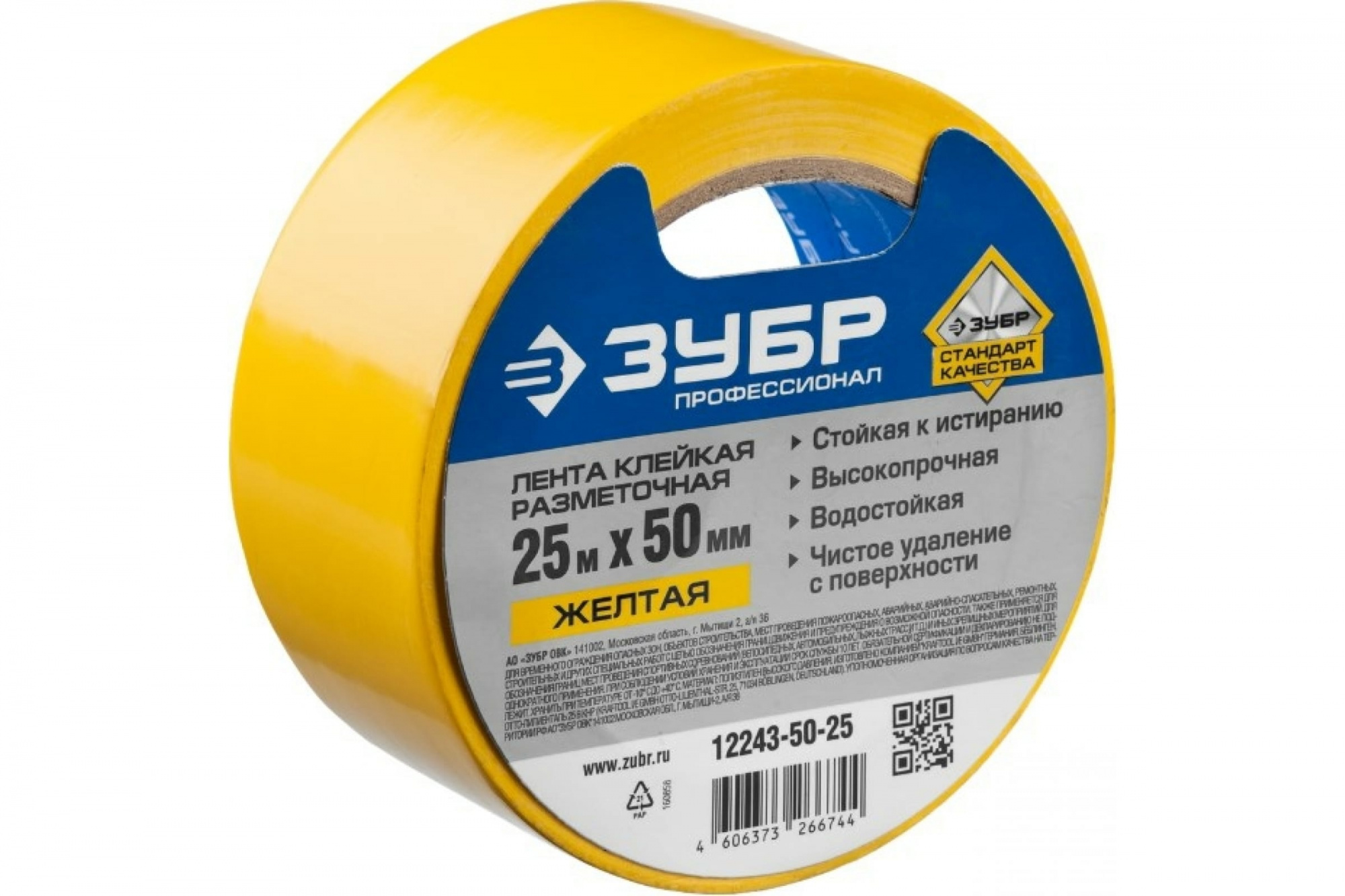 Скотч желтый разметочный 50мм*25м, водостойкий, ЗУБР Профессионал