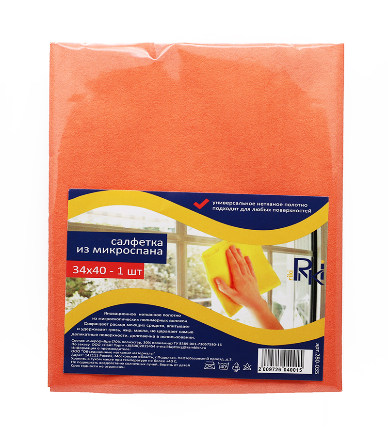 Салфетка бытовая RiKi микроспан 34*40см, 1шт, красная /50/ 280-035