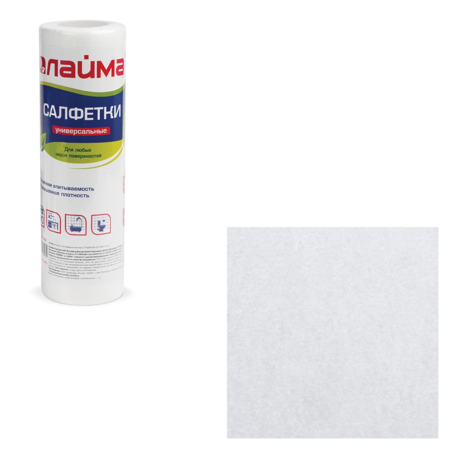 ОписаниеСалфетки ЛАЙМА в рулоне предназначены для протирки различных поверхностей. Могут использоваться как в сухом, так и во влажном виде. Обладают хорошей впитываемостью за счет высокого содержания вискозы.