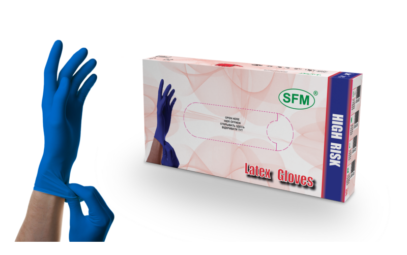 Перчатки латексные синие, M, неопудренные текстур., 25пар/упак /10/ SFM High Risk