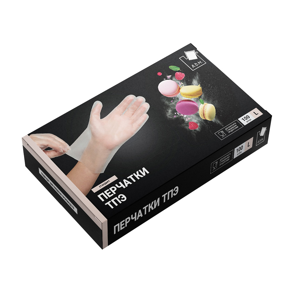 ОписаниеПерчатки ТПЭ А.Д.М. очень эластичные. Для удобства использования, со всех сторон потяните манжету вниз, чтобы зафиксировать её на руке. Подходят для контакта с пищевыми продуктами.