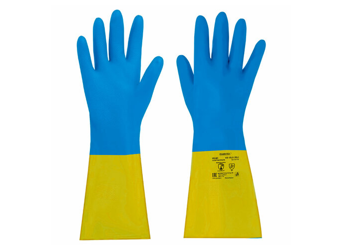 Перчатки КЩС, р-р XL (10-10,5), синие/желтые RABBITEX, 701116