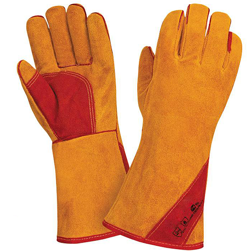 ОписаниеПерчатки комбинирванные, плотная смесовая ткань красного цвета со спилком сорта АB желтого (золотого) цвета, усиленная жесткая крага, утеплитель- комфортный мех желтого (золотого) цвета. Мягкий спилок 1,5 мм (+/-0,2мм), двойные швы. Высокая стойкость к истиранию и разрыву, ограниченная защита от пореза и прокола.
